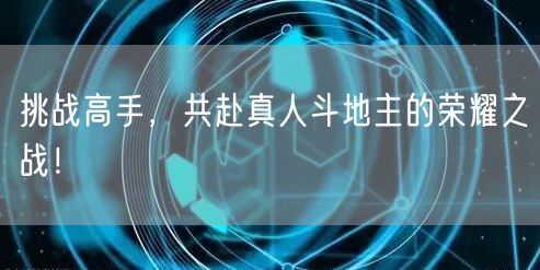 当我们提及斗地主,想必大家都不会陌生。这款融合策略与竞技的国民级游戏,深受大家的喜爱。而今天,我们要讲的不仅仅是一般的斗地主,而是一场高手之间的较量,一场真人斗地主的荣耀之战!
